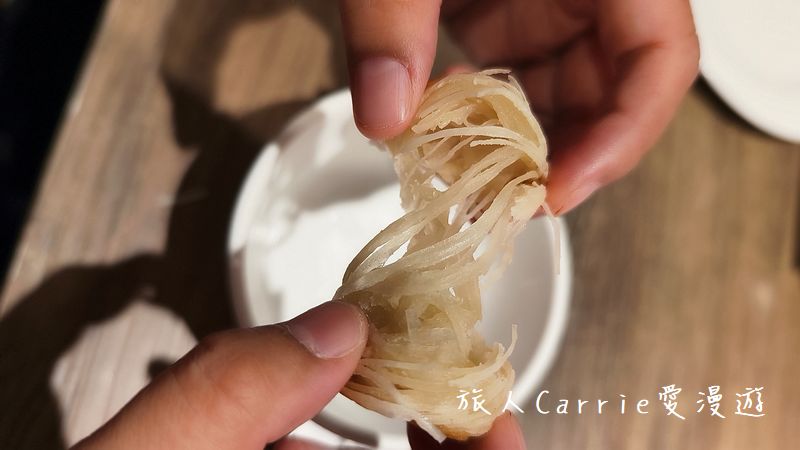 吃法相當特別,將煎得焦黃的兩面用手拉開,外皮酥脆,麵絲軟嫩,拉愈長愈香!