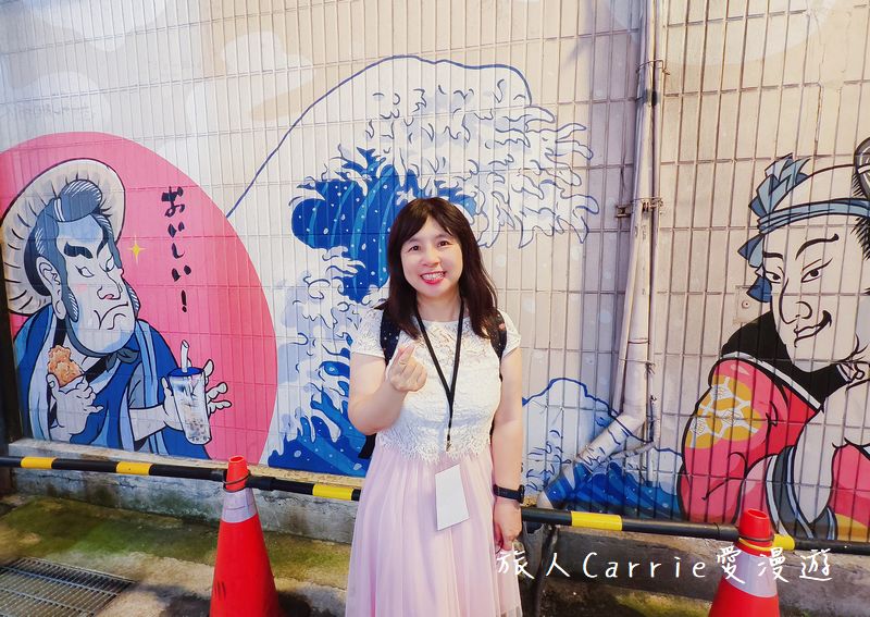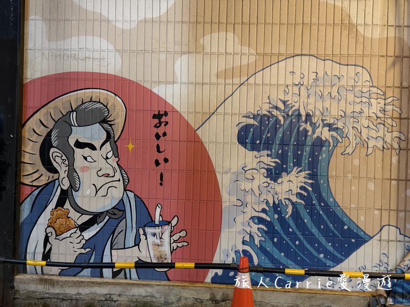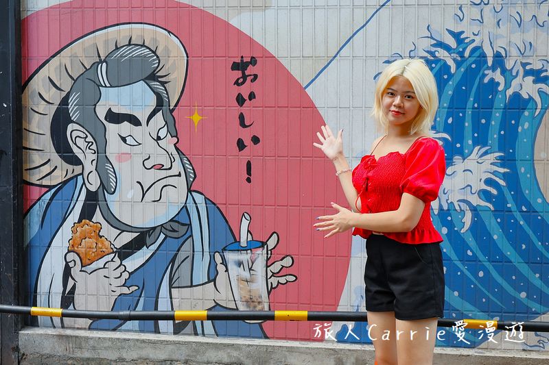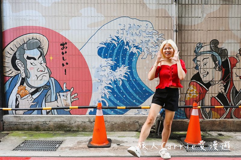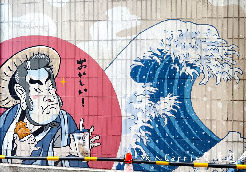 彩繪設計帶著浮世繪及漫畫插畫風格,人物手上還拿著炸物和珍奶,