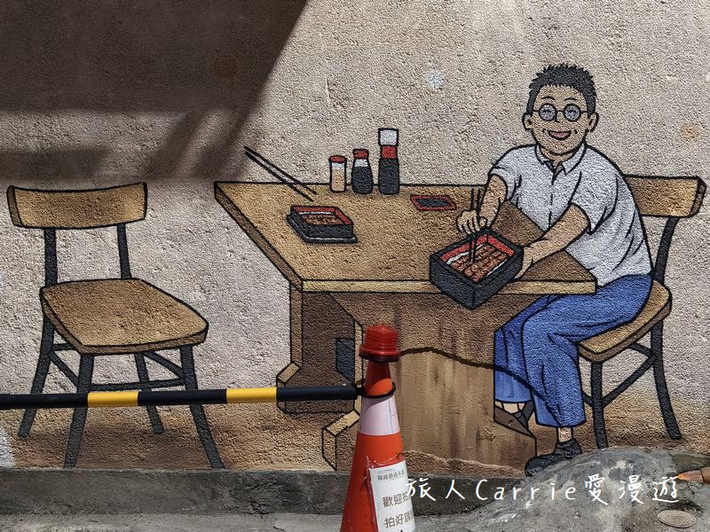 彩繪故事牆把條通商圈內具有代表性的餐飲店家納入其中,