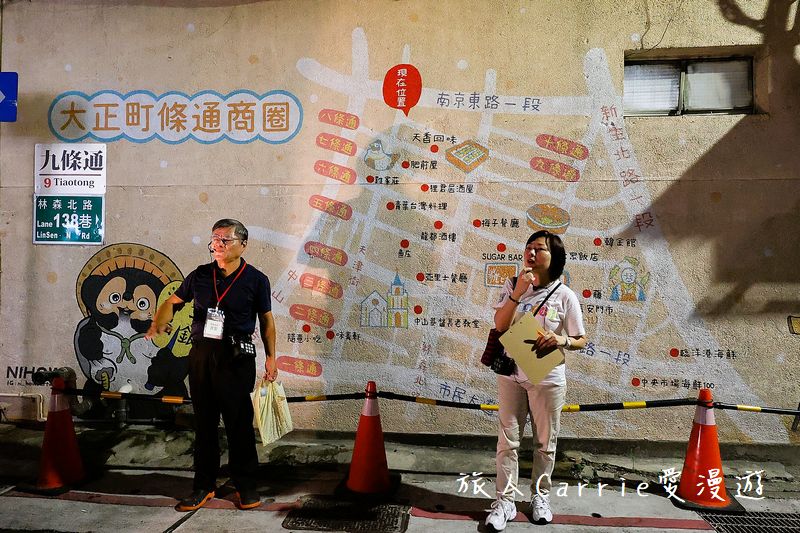 大正町條通商圈美食地圖(彩繪故事牆)、中山基督長老教堂、條通數字意象燈牌、舞齡咖啡館、光酒吧等(日式小巷漫步)