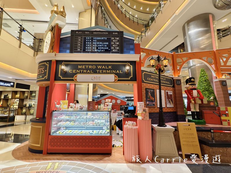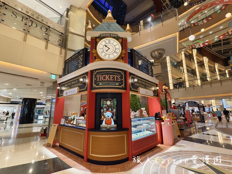 中庭四周的櫃位以車站主題打造,化身售票亭、書報攤、行李房等迷你場景,與入駐店鋪巧妙結合,營造熱鬧的節慶氛圍,