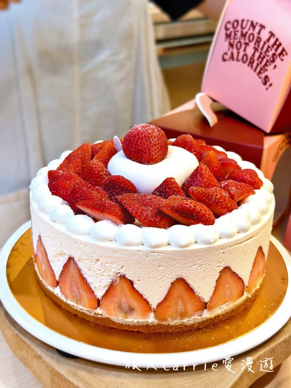 造型以雪白奶霜覆蓋,頂端點綴新鮮草莓,