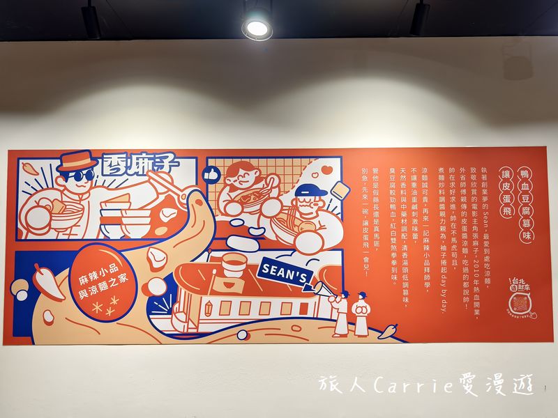 喜愛麻辣小品與涼麵的Carrie,最近聞香來到「香麻子 Sean’s」,品嚐到相當特色美味的「皮蛋醬帥涼麵」、「招牌川椒老虎麵」,這家鄰近行天宮的餐館,由執著於創業夢想的老闆 Sean經營,他酷愛尋找各地的涼麵滋味,因欣賞電影角色張麻子而取名開店,於 2010 年熱血創業。承襲外省師傅手藝,推出招牌皮蛋醬帥涼麵,吃過的人都說「帥」!帥在用心、帥在不妥協,從煮麵、拌料到調醬,全由他親手完成,每天捲起袖子,專注於日復一日的堅持與進步!