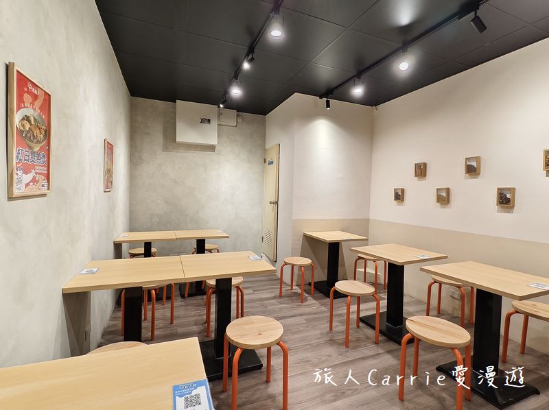 左邊牆面上懸掛著招牌餐點的漫畫海報。