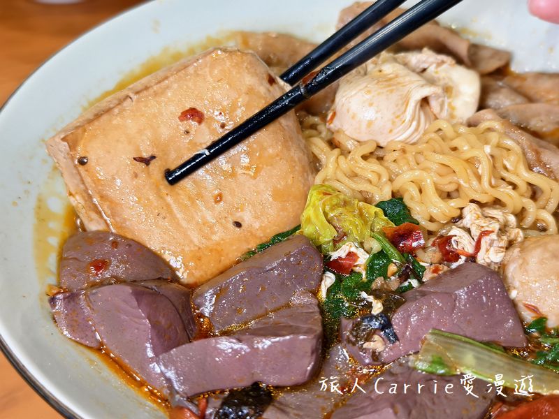 臭豆腐則完全浸透湯汁,吸滿辣湯,