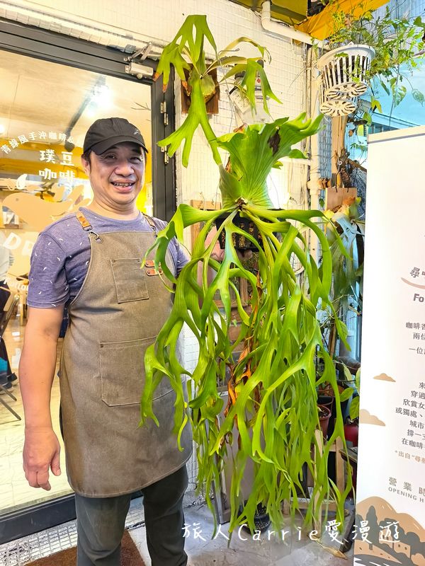 男老闆親手栽種的鹿角蕨、各式盆栽點綴其間,