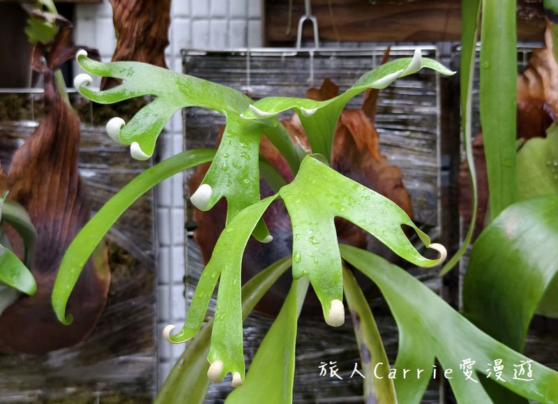 可以穿梭於男老闆親手栽種的鹿角蕨,