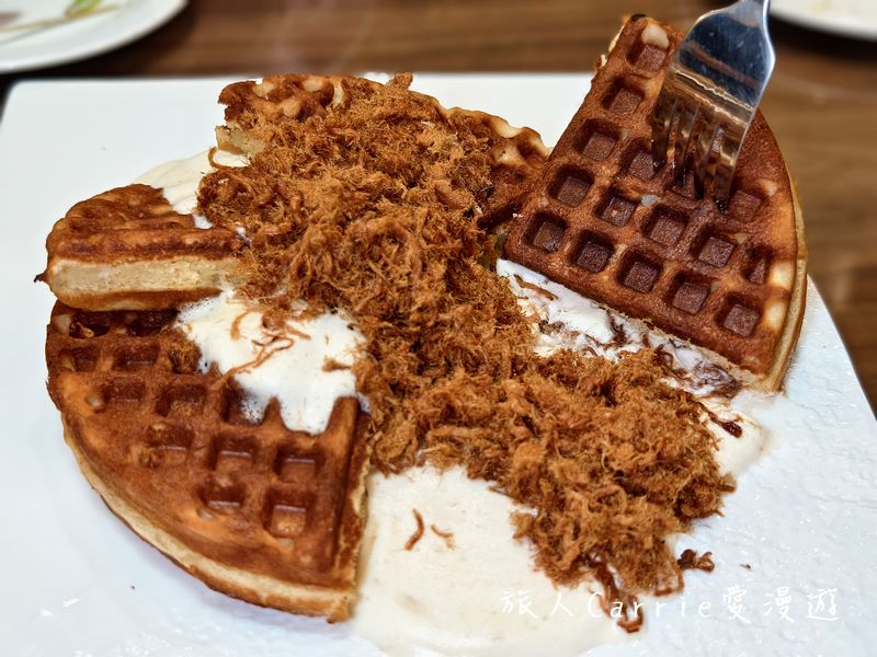 再豪邁撒上苑裡垂坤的招牌肉鬆,如此「苑裡肉鬆奶霜鬆餅」誕生!