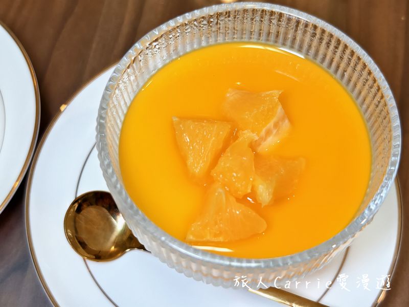 柳橙的果香在嘴裡輕輕散開,和綿密的奶酪交疊在一起,