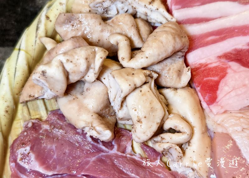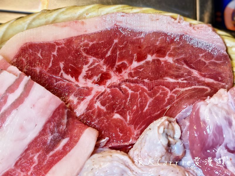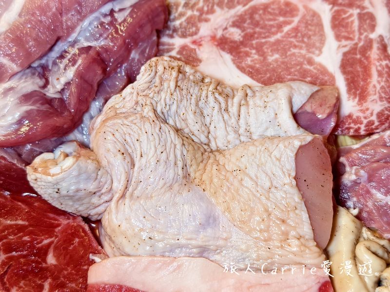 牛板腱、牛五花、豬臉肉、豬五花肉、豬梅花肉、炭香雞腿肉、大邱大腸、