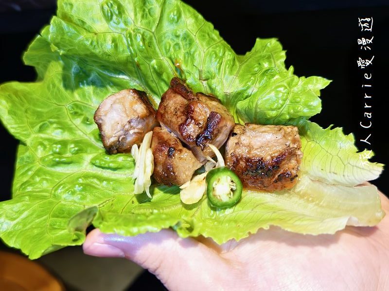 包進生菜裡,再加上泡菜和蒜片一起入口,層次感十足,真的超加分!