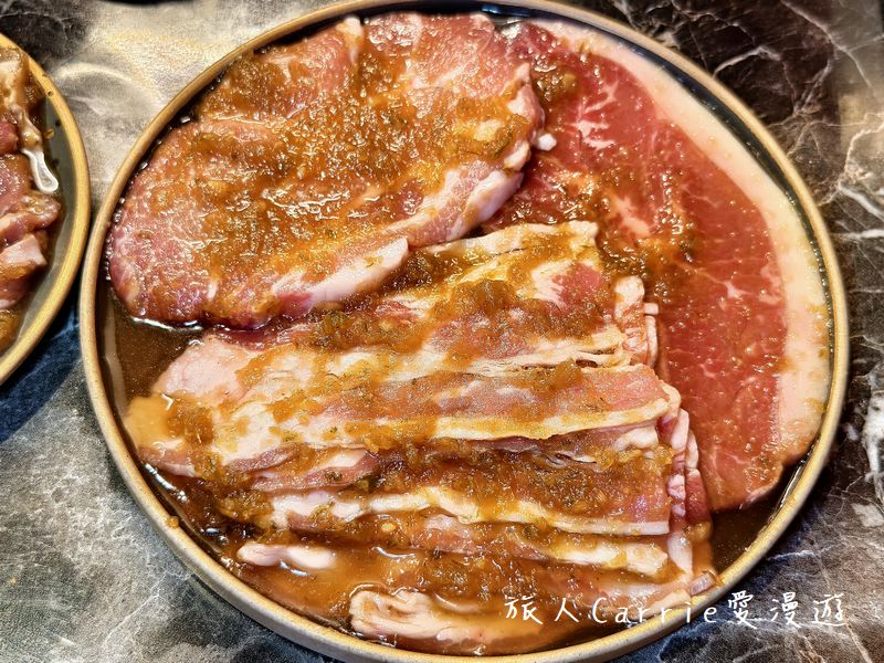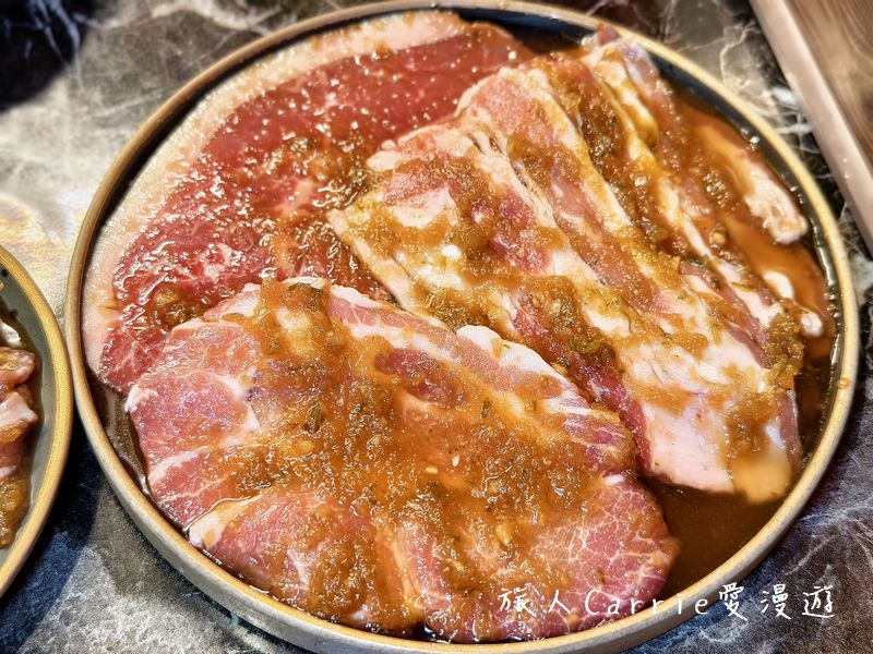 韓式烤肉經典肉品,炭火慢慢將油脂逼出來,