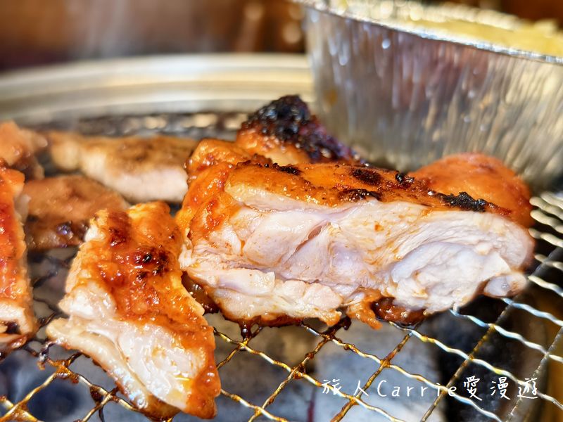 烤的時候,雞油滴落炭火竄起香氣,整塊肉被炭香緊緊包住,
