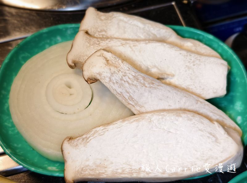 蔬菜部分有杏鮑菇、青椒、洋蔥、櫛瓜可無限取用,