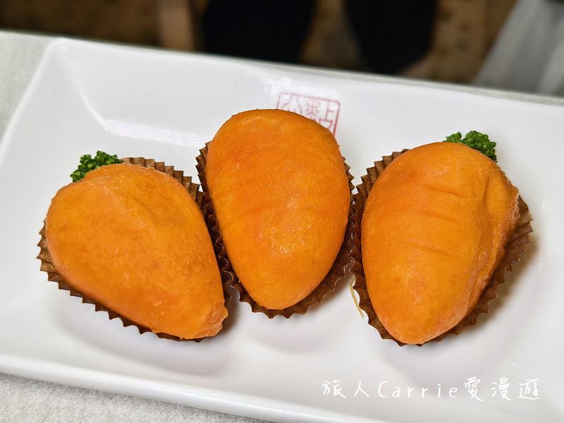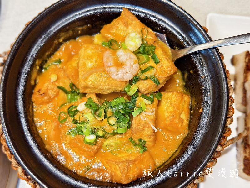 經典鹹蛋黃蝦餅:整顆鹹蛋黃做成獨家金沙粉,入口立刻爆出濃濃蛋黃香,鹹香滑順、層次超豐富,是重口味控的最愛!