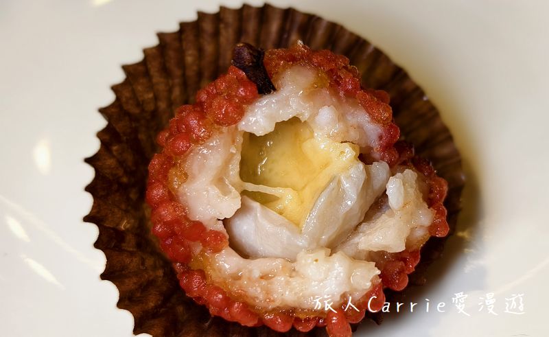 上頭點綴粉橘色魚卵,咬下去立刻逼波逼波,海味滿溢,