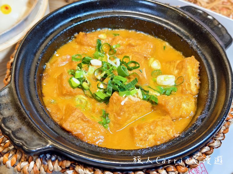 「鹹魚雞粒豆腐煲」經典港式熱騰騰的煲仔中,