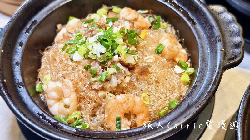 「蒜蓉粉絲鮮蝦煲」大隻的蝦仁,滿滿的粉絲,清爽的娃娃菜,