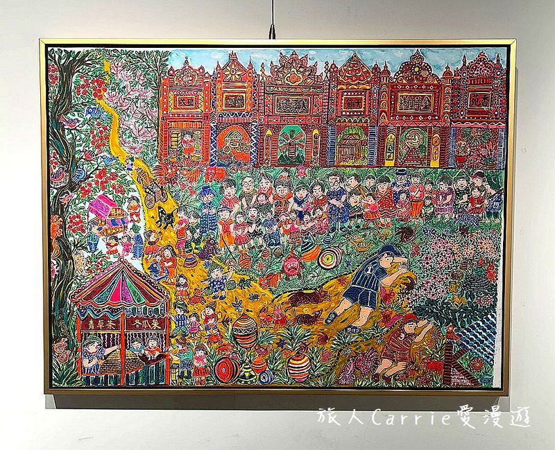 吳維專先生即使晚年生活清苦,他依然緊握畫筆,將情感、信念與夢想毫不保留地傾注其中。那是一份對土地深沉而真摯的愛——老臺灣的街景、人文風貌與鄉土情感,在濃烈飽和的色彩與靈動奔放的筆觸中被一一喚醒。畫面看似童趣單純,卻蘊含複雜的生命厚度;構圖彷彿被框定,情感卻在其中自由流動。