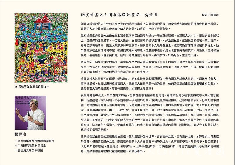 人間藝遊:吳維專先生紀念展 清華大學楊儒賓教授 推薦
