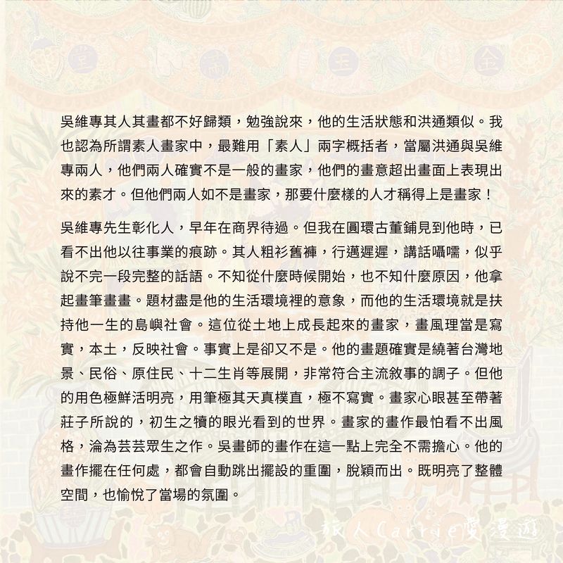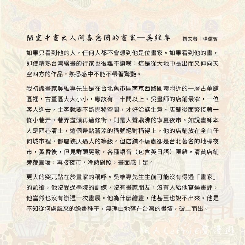 人間藝遊:吳維專先生紀念展 2026年曆說明文字