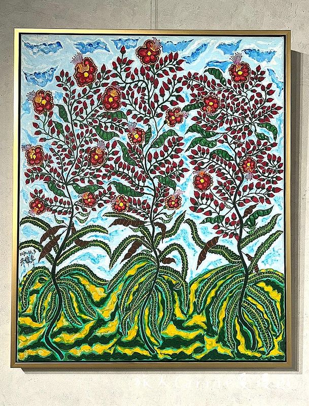 走進吳維專先生的畫作,就像踏上一段穿越時光的臺灣之旅。終其一生定居於台北大稻埕,這片充滿廟宇香火、街巷人情與歷史記憶的土地,深深滋養了他的藝術靈魂。廟宇屋脊的線條、民俗節慶的熱鬧氣息、原住民圖騰奔放而純粹的美感,以及傳統剪紙的節奏與韻律,甚至臺灣各地的名勝風景,都化作他畫布上最鮮活的元素,層層堆疊出屬於臺灣的視覺語言。