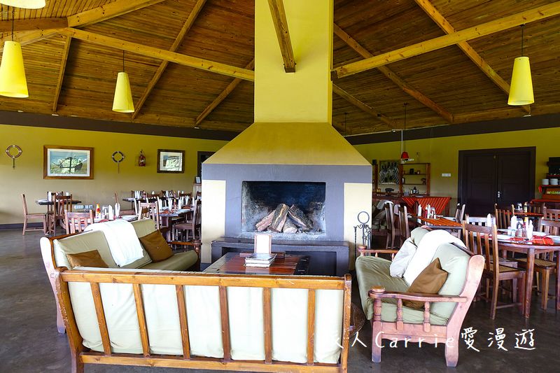 溫暖的壁爐:因為海拔高,這裡夜晚非常寒冷,可能只有 10 度以下。旅館的公共休息區有一個巨大的石造壁爐,晚上遊客會聚在那裡取暖、喝咖啡、分享當天拍到的動物照片。