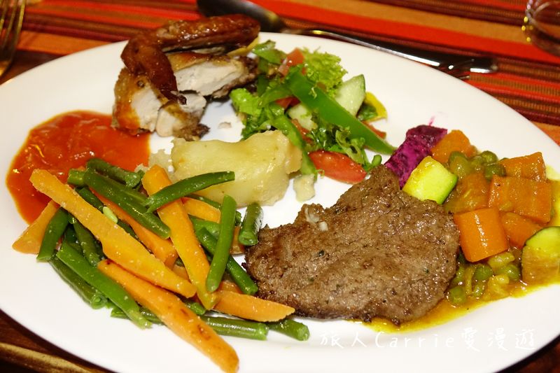 晚餐通常提供豐盛的自助餐(Buffet),包含溫熱的湯品、新鮮蔬菜、多種肉類料理,以及現做的甜點。