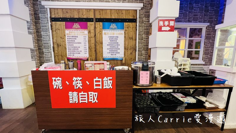 餐具可以自取,免費無限供應白飯,也能自己裝盛,